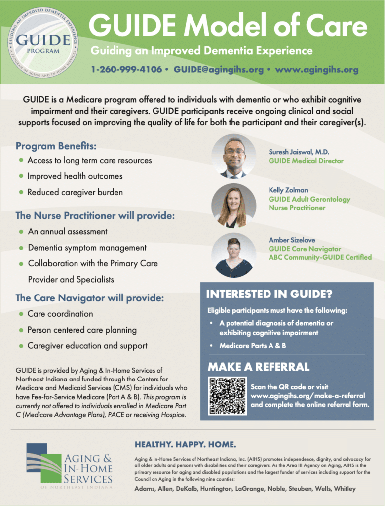 GUIDE is a Medicare program for individuals with dementia/cognitive impairment, and their caregivers.